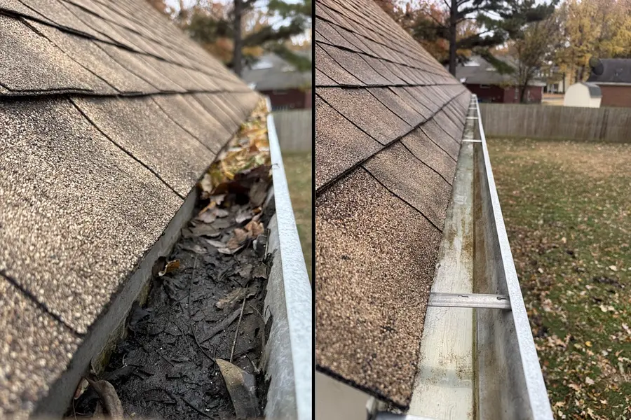 Complete gutter cleaning with downspout flush to protect your home.